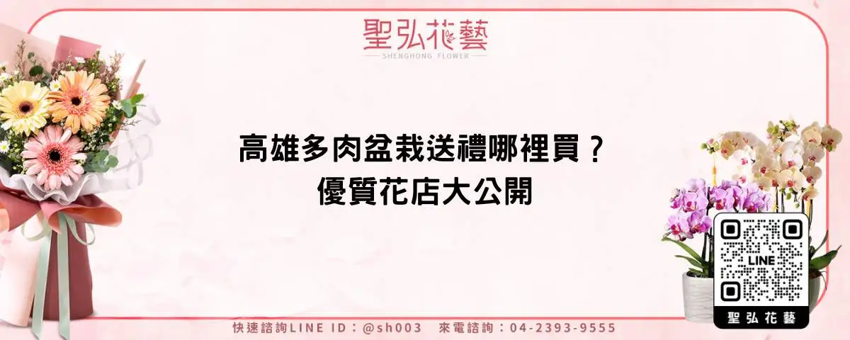 高雄多肉盆栽送禮哪裡買?今天就來推薦一間,優質的花店「聖弘花藝」。他們全台最大的連鎖花店,在各縣市皆設有門市與倉儲,能迅速製作花禮並安排配送。無論是在配送速度、花材品質,還是價格方面,都深受顧客信賴與喜愛。若您想訂購高雄多肉盆栽送禮,只需加入官方 LINE:@sh001,就能隨時與24小時線上客服聯繫。因此,高雄多肉盆栽送禮哪裡買?「聖弘花藝」絕對是最佳選擇。