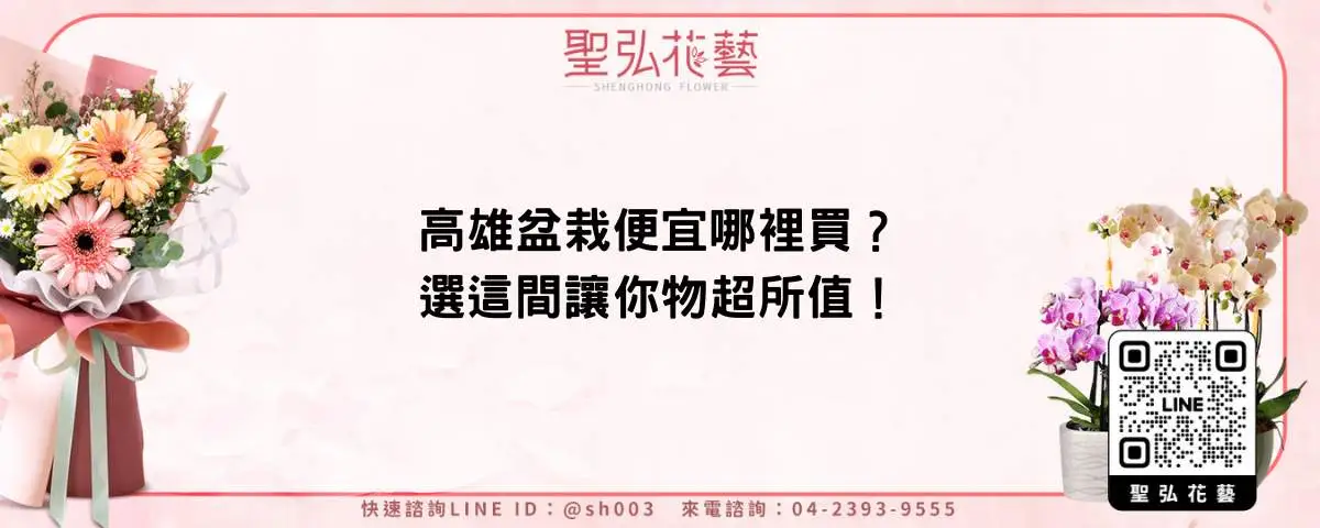 高雄盆栽便宜哪裡買?今天要為您推薦一家,值得信賴的優質花店「聖弘花藝」。作為全台規模最大的連鎖花藝品牌,他們在各縣市皆設有門市與倉儲,能快速完成花禮製作並安排配送。無論是配送效率、花材品質,還是價格方面,都廣受顧客好評。高雄盆栽便宜哪裡買?找「聖弘花藝」,讓您買的物超所值!只要加入官方LINE:@sh001,就能隨時與24小時的線上客服洽詢,非常方便又快速。