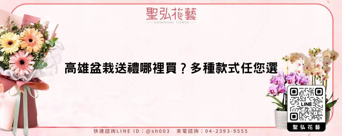 高雄盆栽送禮哪裡買?「聖弘花藝」絕對是值得信賴的推薦品牌!這間花店在全台各縣市皆設有門市與倉儲,配送範圍廣泛,無論您身處何地,都能迅速出貨。只要加入 LINE 官方帳號:@sh001,即可隨時聯繫24小時客服,輕鬆完成訂購。他們不僅價格合理、花材品質穩定,還會在送達後主動拍照回傳,讓您送禮安心又有面子。所以,高雄盆栽送禮哪裡買?「聖弘花藝」是您表達祝賀心意的最佳選擇。