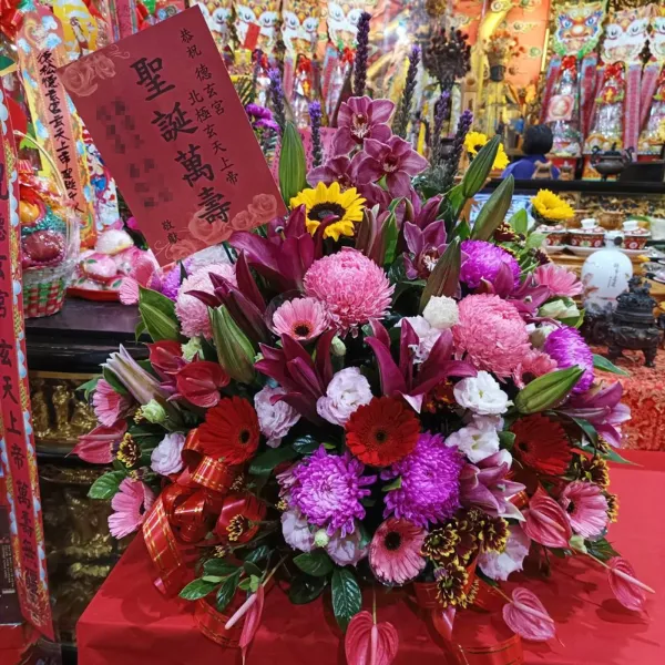 提供月訂、季訂、年訂神明桌花服務。聖弘花藝每月為您精心搭配不同風格的還願桌花,讓心意不間斷,誠敬日日延續。
