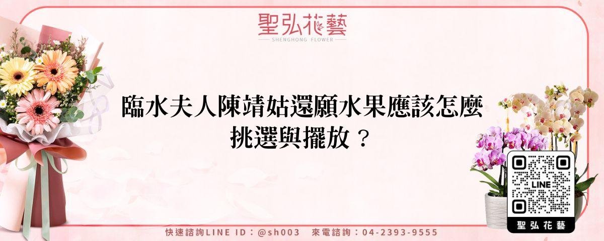 整體而言,準備臨水夫人陳靖姑還願水果以誠意為先,再配合當地習俗與廟方指引。若需專業協助,聖弘花藝能提供水果與花禮搭配建議與物流配套,讓還願流程更順利、體面。