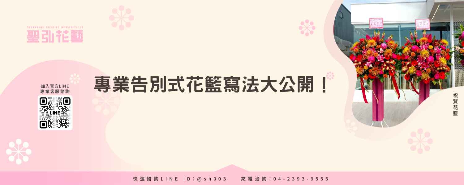 尋找合適的告別式花籃,令人頭痛。那您可以安心地來到聖弘文創。我們提供專業、優秀的告別式花籃,可以幫助您表達對往生者最真誠的敬意。我們的花籃產品以傳統及當代元素完美融合,搭配多樣客製化服務,滿足您各種需求。讓我們一同來紀念往生者,以真誠的敬意去送別,讓我們用有意義的花籃,傳達對他們的深切思念。