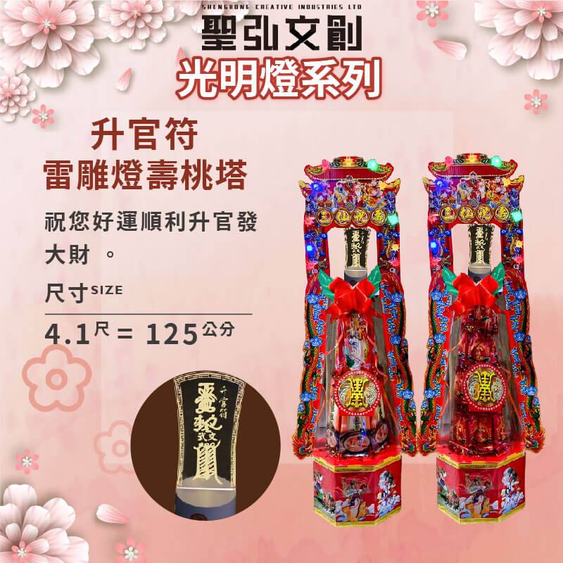 產品名稱:升官符雷雕燈壽桃塔